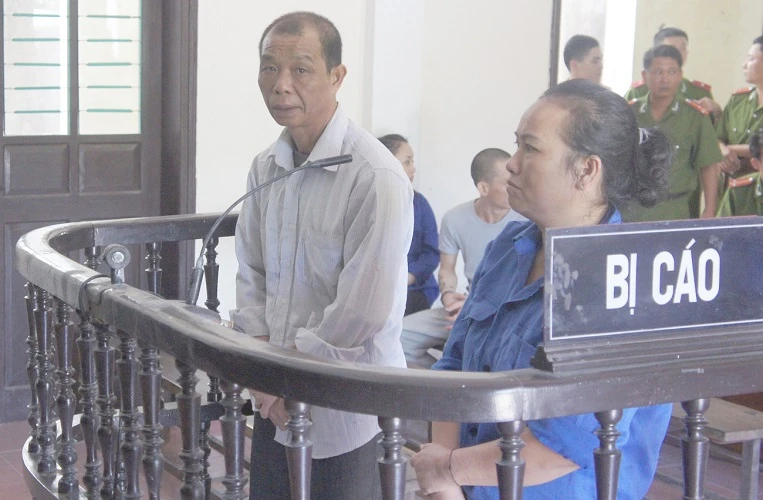 Vợ chồng bị cáo Vi Thị Hoa và La Văn Phanh đứng trước vành móng ngựa tại phiên tòa sơ thẩm. Ảnh: Đ.LAM