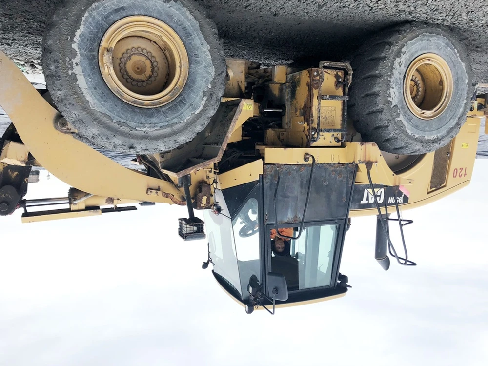 Chị Quyên quá nhỏ bé trong chiếc xe lu khổng lồ