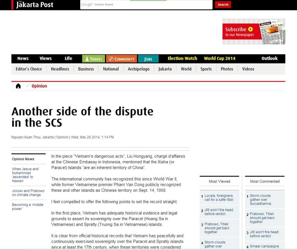 Bài viết của đại sứ Nguyễn Xuân Thủy trên Jakarta Post