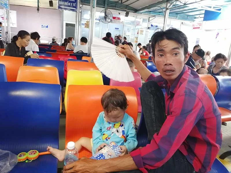 Trẻ đến khám bệnh hô hấp và tiêu hóa trong tiết trời nắng nóng tại BV Nhi đồng 1. Ảnh: H.LAN