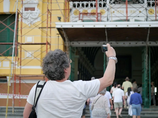 Một vị khách du lịch nước ngoài cũng cảm thấy rất hào hứng khi tòa nhà Bưu điện đang dần thay “áo mới”.