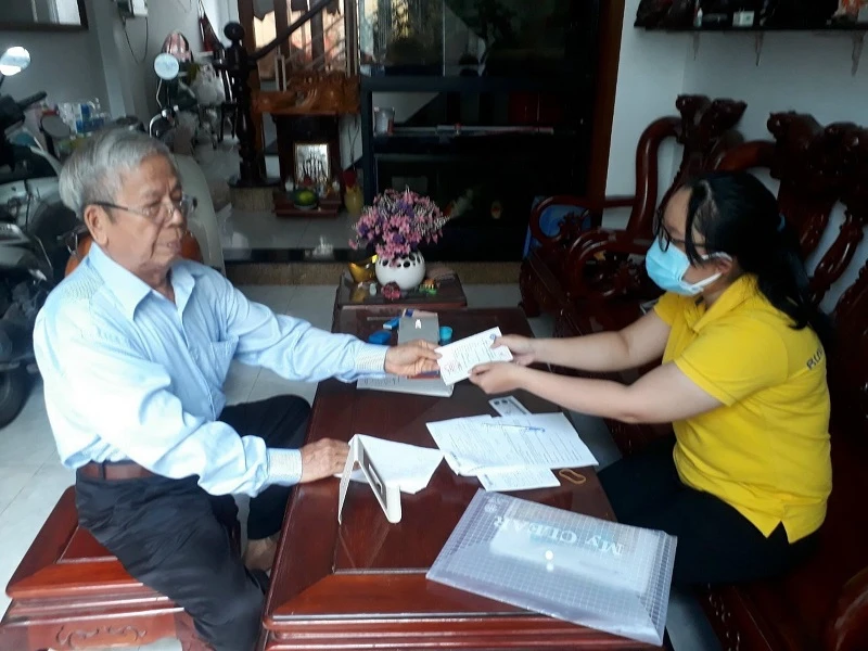Nhân viên Bưu điện TP.HCM chi trả lương gộp hai tháng 7 và 8 năm 2021 tại nhà. Ảnh: T.VÂN