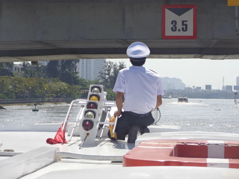 Nhiều ý kiến cho rằng hiện tĩnh không của nhiều cây cầu đang 'cản trở' sự phát triển của cả buýt và du lịch đường sông. Trong ảnh, tàu water bus khi chui qua cầu Kinh Thanh Đa cao chỉ 3,5 m nên thủy thủ phải leo lên nóc hạ cột cờ, đèn xuống. Tại tọa đàm, nhiều doanh nghiệp tán thành với ý kiến của Sở GTVT về việc sẽ xây dựng cầu Thủ Thiêm 3, 4 theo dạng cầu quay hoặc cầu mở để thuận lợi cho các loại tàu biển, thuyền du lịch lớn lưu thông tiếp cận được ngay khu vực cảng Khánh Hội - Nhà Rồng. Bà Liêu Thị Mỹ Hạnh, Giám đốc Công ty CP đầu tư Hoàng Triều, đưa ra đề nghị TP sớm kiến nghị Bộ GTVT nhanh chóng hoàn thành xây dựng cầu đường sắt Bình Lợi để khơi thông dòng khách buýt và du lịch ngược lên sông Sài Gòn về Củ Chi, Bình Dương, Tây Ninh...