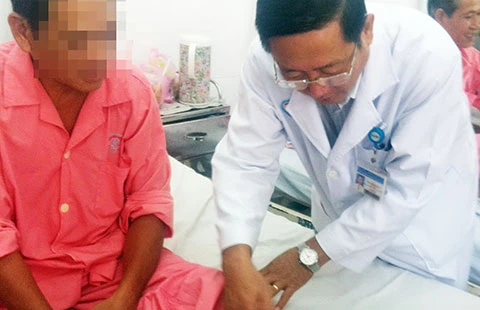 Một nạn nhân bị rắn lục cắn đang điều trị tại BV Chợ Rẫy. Ảnh: TÙNG SƠN