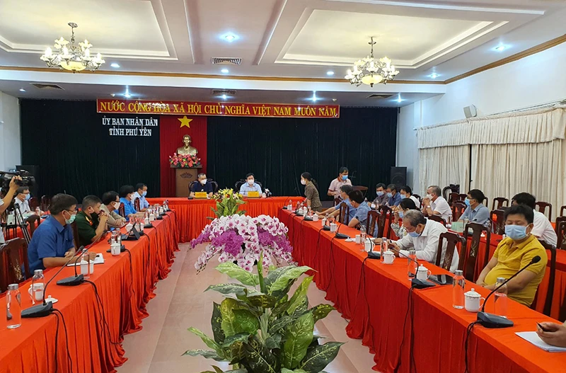 UBND tỉnh Phú Yên họp khẩn tối 23-6 triển khai các biện pháp phòng chống dịch COVID-19. Ảnh: MINH KHÔI