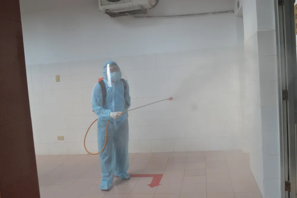 Phun khử trùng. Ảnh: Bệnh viện cung cấp