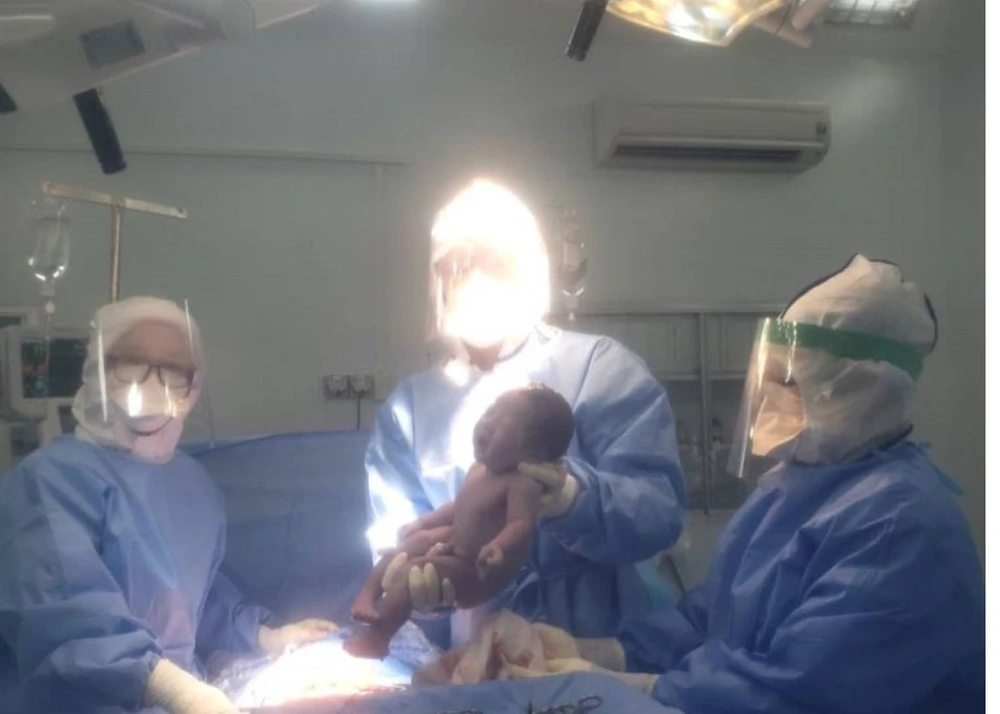 Ê kip Khoa Sản BV điều trị COVID-19 Trưng Vương mổ bắt con thành công cho sản phụ nhiễm COVID-19. Ảnh: BVCC