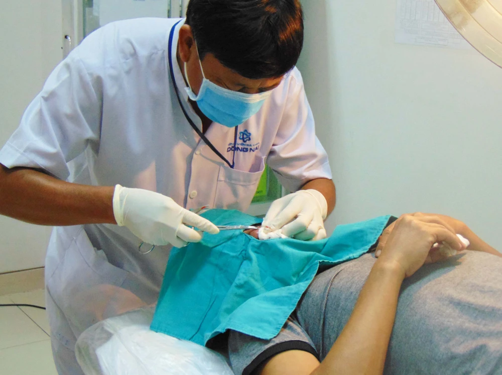 Sau đó, anh T. được nhân viên y tế Lê Hữu Đạt đưa vô phòng tiểu phẫu và khâu đúng 10 mũi.