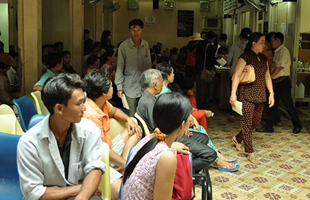 Hơn 4 giờ chiều mà bệnh nhân tại BV Ung bướu vẫn đông nghẹt. Ảnh: TÙNG SƠN