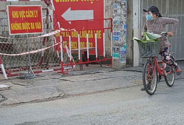Một khu vực trên địa bàn huyện Hóc Môn, TP.HCM bị phong tỏa do có ca bệnh COVID-19. Ảnh: TRẦN NGỌC