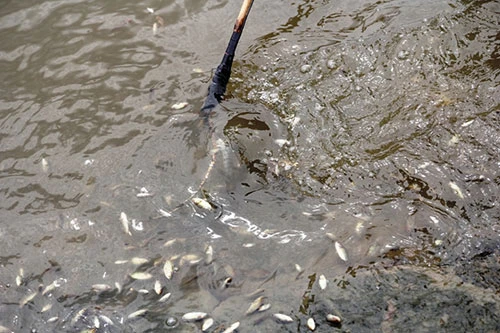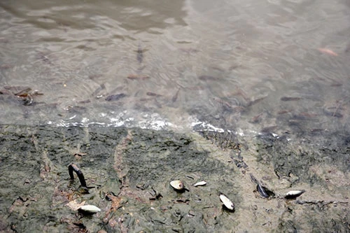 Bị chích điện, thiếu dưỡng khí… khiến một số lượng lớn cá mới phóng sinh đã bị chết.