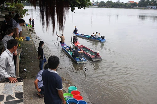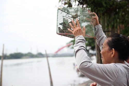 Họ ngang nhiên chực chờ sẵn trước mặt những người dân đến bờ sông phóng sinh để vớt cá.
