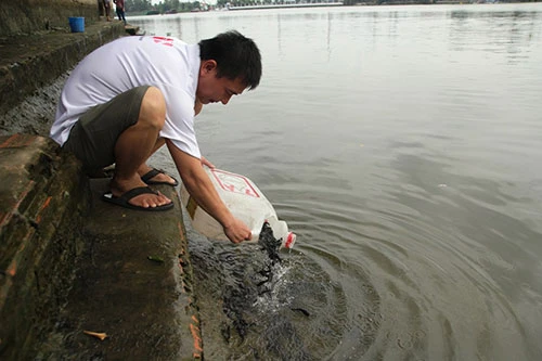 Các loại cá được thả xuống dòng sông Sài Gòn.