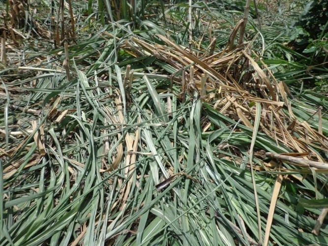 Bị xua đuổi, đàn voi tiếp tục di chuyển sang khu vực rẫy của các hộ dân trong buôn. Bà Bàn Thị Xuân chưa hết bàng hoàng kể lại: “Khoảng 7 giờ sáng ngày 21/8, tôi ra thăm rẫy mía thì phát hiện mía bị dẫm đạp đổ hàng loạt. Khi đi sâu vào bên trong, tôi hoảng hồn phát hiện đàn voi khoảng 5 con to bằng cả ngôi nhà đang ung dung ăn mía trong rẫy. Hoảng quá, tôi lặng lẽ đi ra khỏi rẫy chạy một mạch về buôn báo bà con ra hỗ trợ đuổi voi. Đuổi mãi voi mới chịu đi, kiểm tra thì hơn 2 sào mía bị voi ăn, dẫm đạp hư hại hoàn toàn. Rẫy mì cạnh đó chuẩn bị thu hoạch cũng bị quần nát” – bà Xuân than thở.