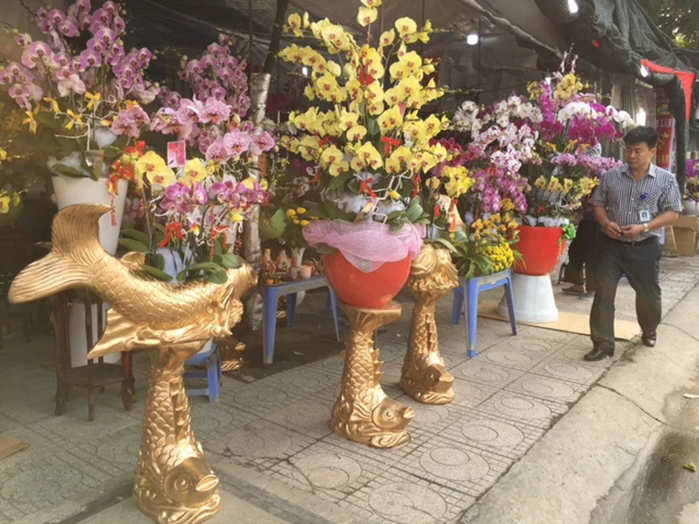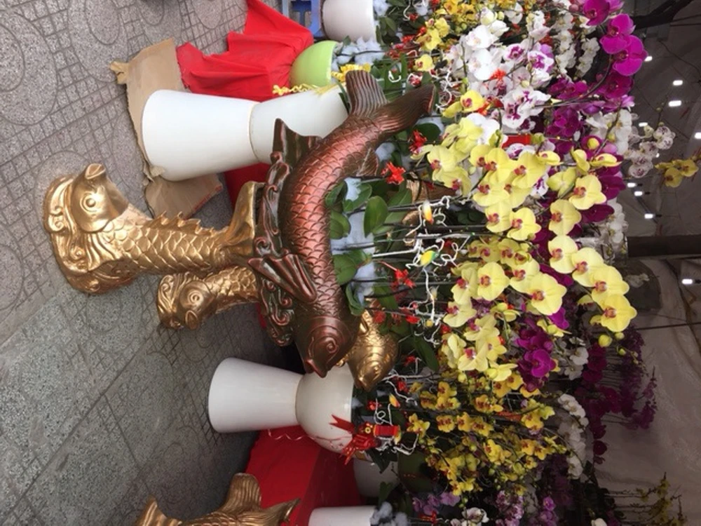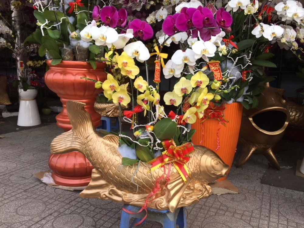 Chú Quang, chủ vườn lan từ Lâm Đồng, cho biết năm nay chú đặt mua các chậu nhựa hình cá chép đủ kích cỡ để đựng lan vừa bán cho khách dịp cúng tiễn ông Táo vừa để khách chưng cho suốt những ngày Tết.