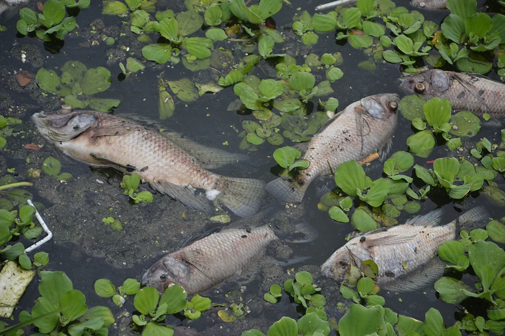 Nước bị ô nhiễm là nguyên nhân kiến cá chết hàng loạt. Ảnh. N.TRI