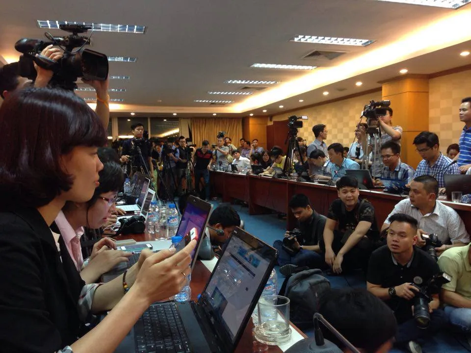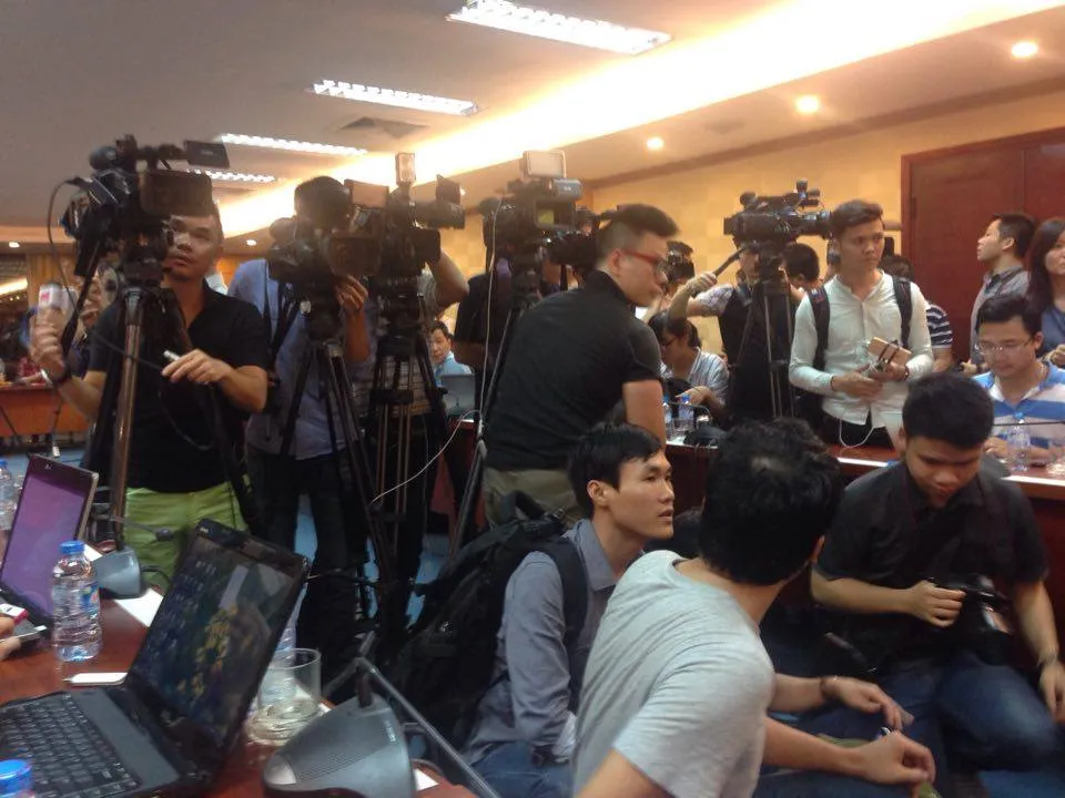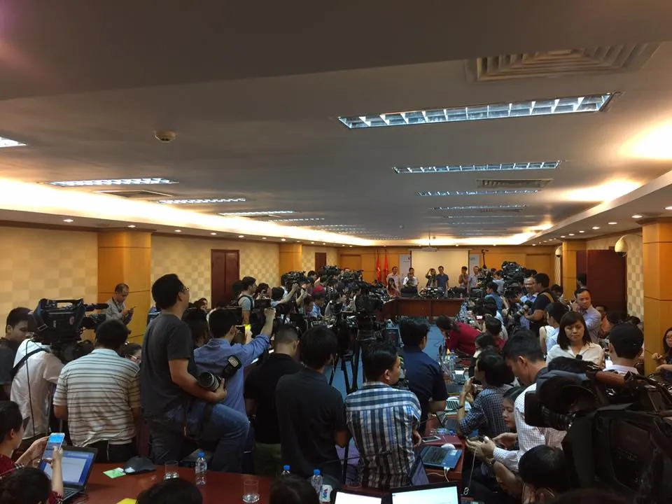 Hàng trăm nhà báo đến tham dự đã không nản lòng, tiếp tục chờ đợi để có thông tin. Đến 17 giờ 30 chiều nay, đại diện Bộ TN&MT lại ra thông báo sẽ có họp báo.