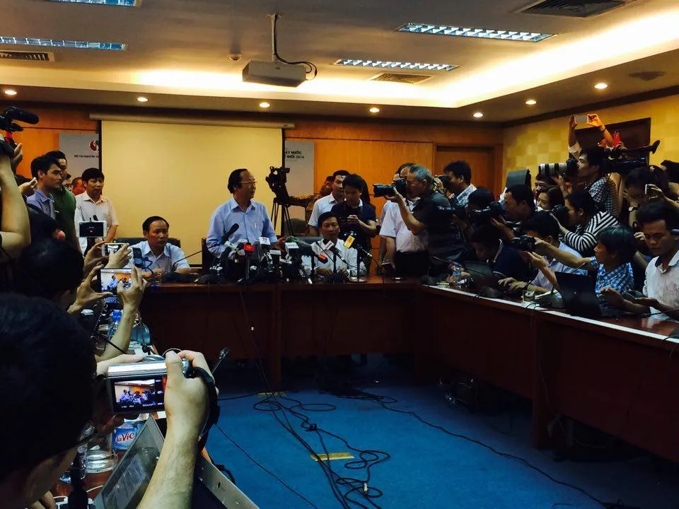 Trước đó, theo như thông báo, sau cuộc họp kín, Bộ TN&MT sẽ tổ chức họp báo, tuy nhiên, đầu giờ chiều nay, ông Nguyễn Ngọc Văn, Trưởng phòng Báo chí truyền thông, xác nhận với báo chí chiều nay sẽ không diễn ra họp báo như dự kiến.