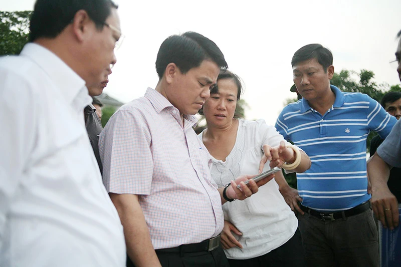 Chủ tịch UBND TP Hà Nội Nguyễn Đức Chung kiểm tra, chỉ đạo xử lý hiện trượng cá chết hàng loạt tại hồ Tây chiều 2-10.