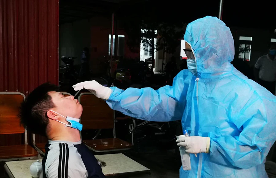 Trung tâm kiểm soát bệnh tật tỉnh Thanh Hóa thực hiện lấy mẫu, truy vết khẩn cấp mỗi khi phát hiện những điểm có nguy cơ lây nhiễm. Ảnh: THU HÀ