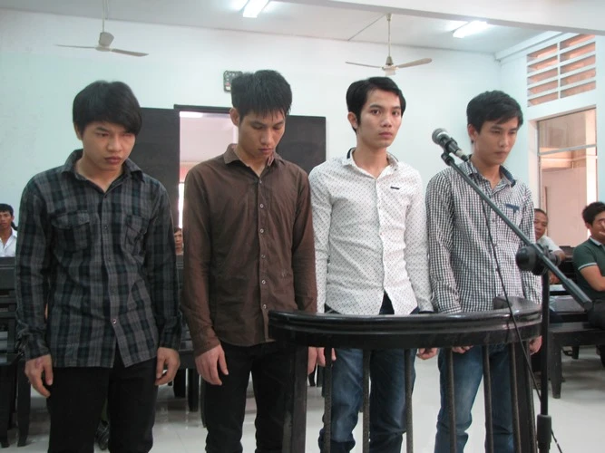 Bị cáo Nhật, An, Thanh, Hóa trước vành móng ngựa