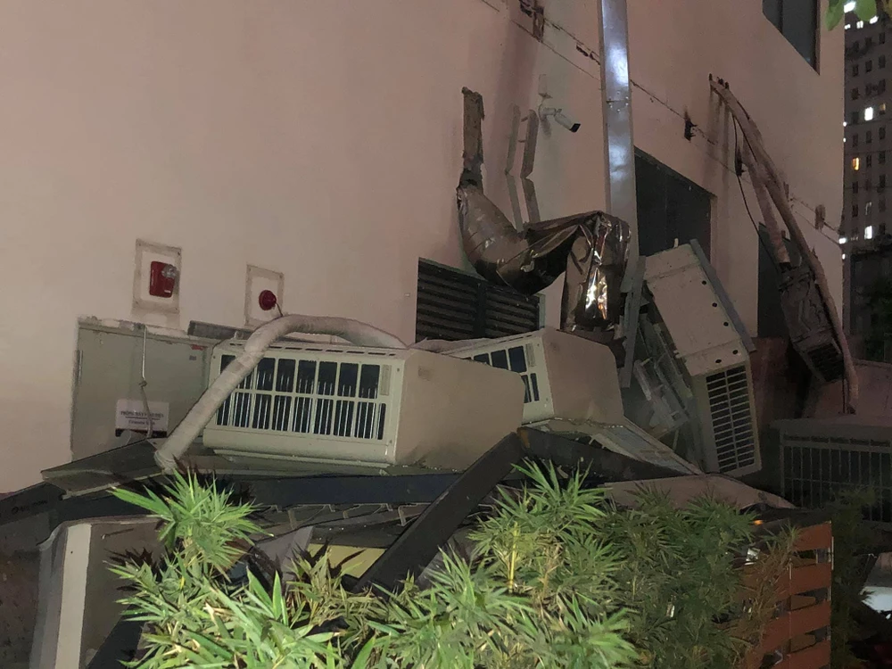 Theo bảo vệ của tòa nhà, khoảng 22 giờ, khi đang trực thì họ nghe thấy một tiếng động lớn nên chạy ra xem, phát hiện dàn điều hoà đã rơi xuống. Lúc này đã muộn, trời lại mưa nên không có người qua lại.