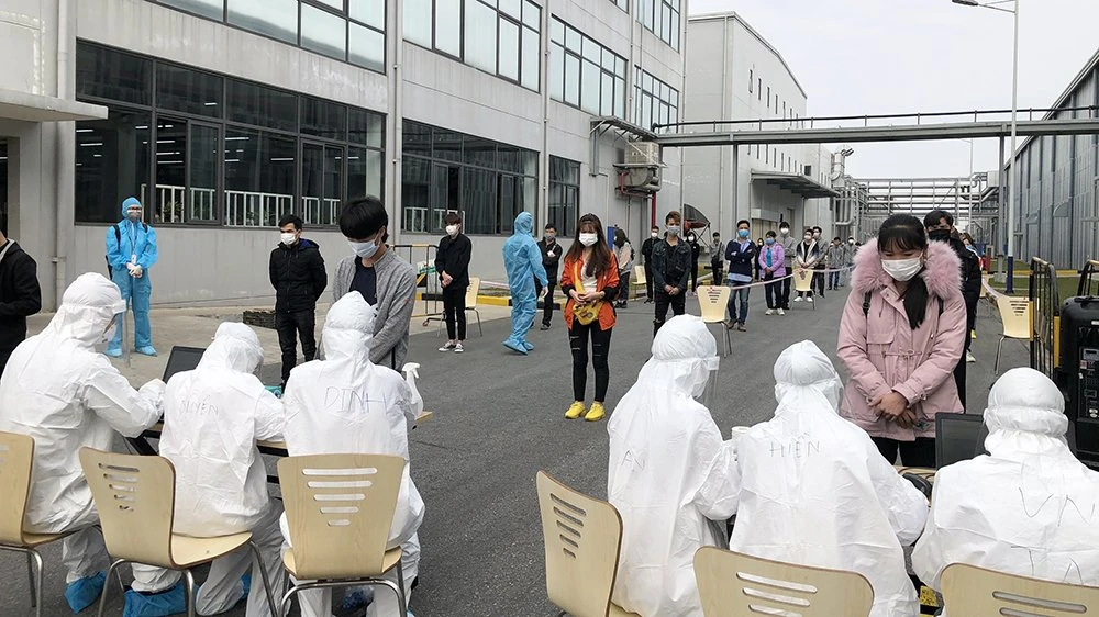 Lấy mẫu xét nghiệm COVID-19 cho công nhân ở huyện Cẩm Giàng, Hải Dương