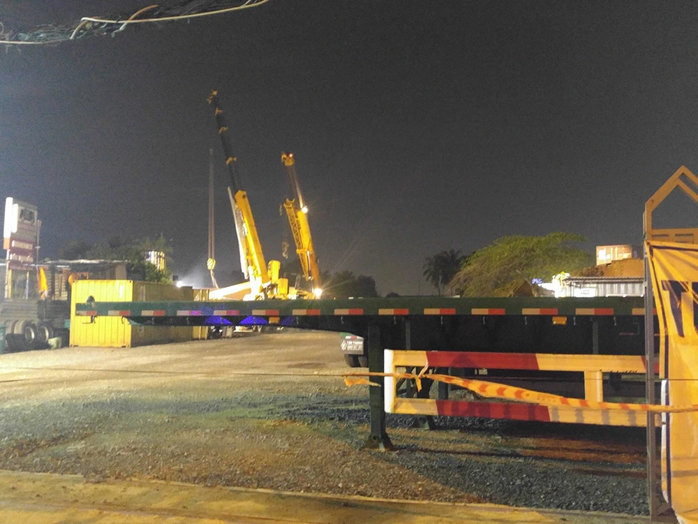 Đến khoảng 20 giờ tối hai xe cẩu được huy động để di dời phương tiện gặp sự cố.