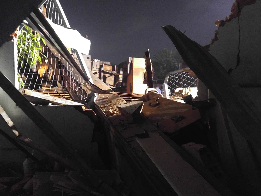 Khu vực chiếc xe tải cẩu bị đổ sập.