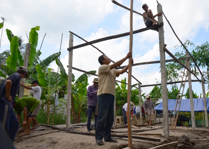 Không chỉ góp tiền, các thành viên câu lạc bộ còn góp sức làm nhà. Tự tay các ông đi mua ximăng, sắt về làm sẵn bộ cột, sau đó góp công xây nhà. Chị Nguyễn Diệu Trang (thành viên câu lạc bộ) nói: “Trước đây tôi bị tai nạn giao thông, con trai duy nhất qua đời, hai vợ chồng đều bị di chứng. Đám tang con trai diễn ra trong mưa, hàng trăm người đến đưa tiễn phải chen chúc trong căn nhà chờ sập. Anh chị em trong câu lạc bộ và bà con đã thương, giúp cho cái nhà thì giờ mình cũng nên trả nợ ân tình đó cho đời”.