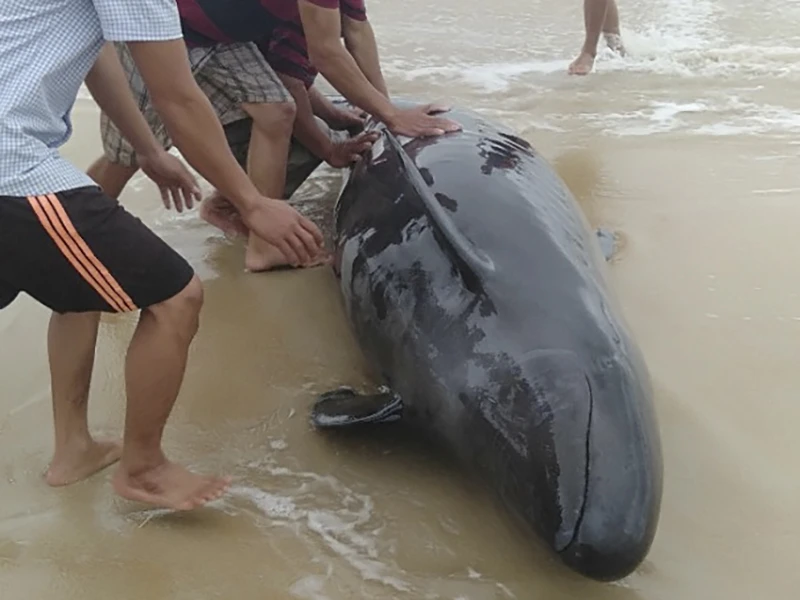 Theo người dân nơi đây, cá heo mắc cạn là do bơi quá sát bờ để ăn nhuyễn thể (con ruốc). Có thể do biển động sóng to nên cá đã bị đánh tấp vào bờ.