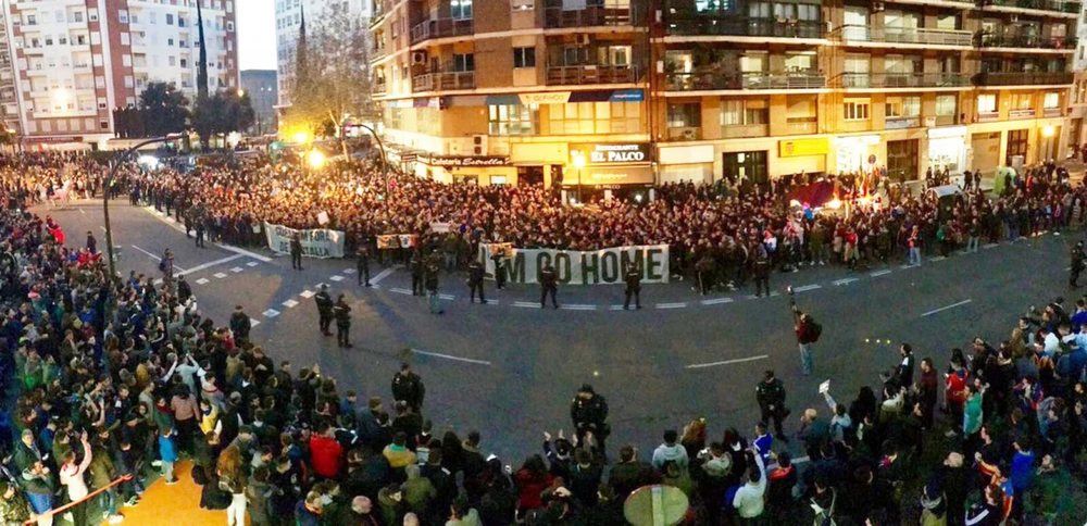 Hàng ngàn cổ động viên Valencia tụ tập với biểu ngữ "Ông Lim cút về nhà"