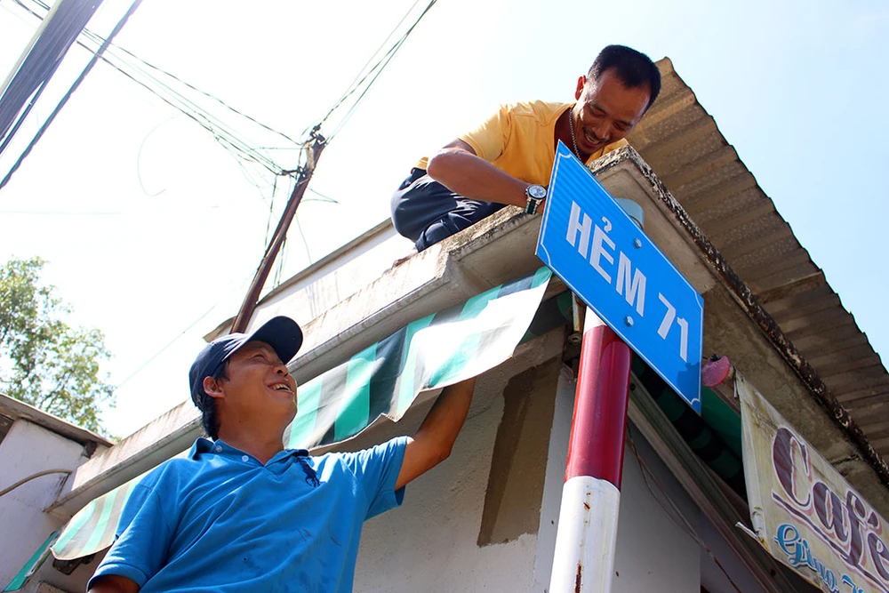 Trên đường số 8, lực lượng đã gỡ vài mái che. Thấy vậy, rất nhiều nhà xung quanh cũng khẩn trương tự ra tháo biển hiệu, mái che của nhà mình. Không ai phản đối, nhà này hướng dẫn nhà kia gỡ, nhộn nhịp cả khu phố.