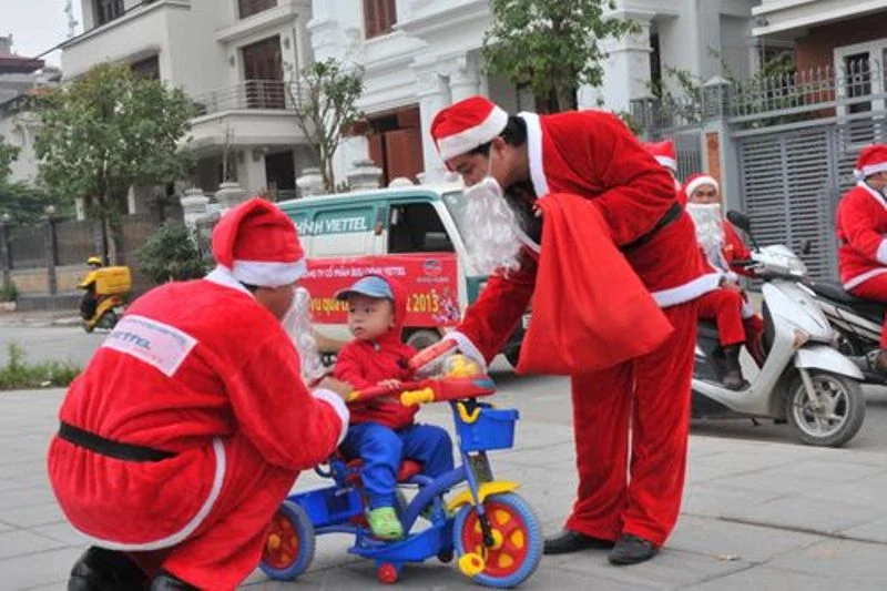 Đóng vai ông già Noel đi phát quà cho trẻ em hoặc làm hoạt náo viên tại các siêu thị phục vụ Giáng sinh là một trong những công việc hái ra tiền được nhiều bạn trẻ lựa chọn.