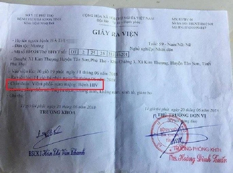 Vài ngày qua, mạng xã hội lan truyền thông tin một người dân tại xã Kim Thượng, huyện Tân Sơn, Phú Thọ bỗng dưng đi khám bệnh lại bị chẩn đoán nhiễm HIV, trong khi lối sống lại rất lành mạnh. Bệnh nhân trung tuổi này chủ yếu ở nhà, hiếm khi đi xa và khó có khả năng tiếp xúc với các nguồn lây nhiễm bệnh.