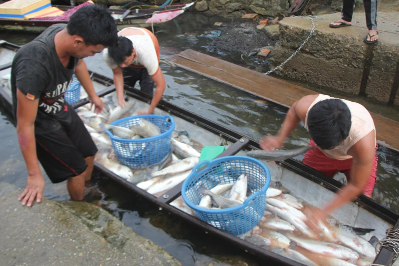 Theo bà Vĩnh, sau khi cá lờ đờ vì do sốc nước, gia đình khẩn trương vớt những con cá, ướp đá để bán cho các thương lái. Tuy nhiên, nếu cá sống thì bán giá 85.000 đồng/kg nhưng hiện nay chỉ bán được 30.000 đồng/kg.