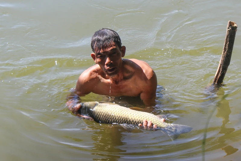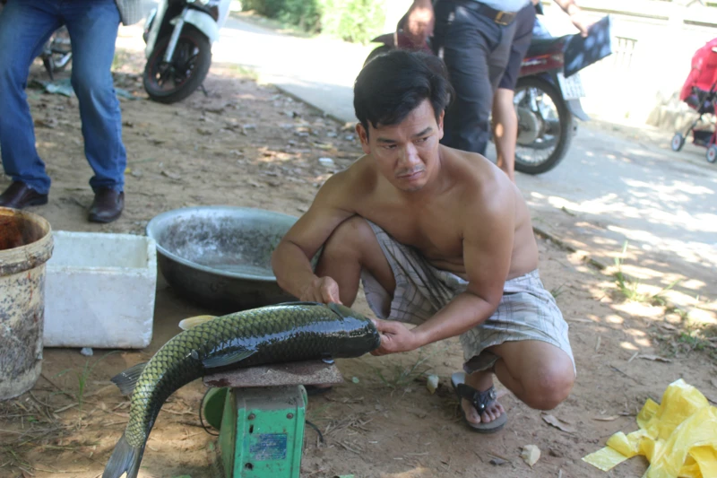 “Cá nuôi được gần 10 tháng bỗng nhiên lúc ra phát hiện cá chết hơn 30 con khoảng 5-6 kg, tôi cùng ba người trong nhà ra vớt lên đem đi bán để cứu vãn được chừng nào hay chừng đó. Nhưng nhìn chung thì không thu hồi đủ vốn” -chị Hà nói.