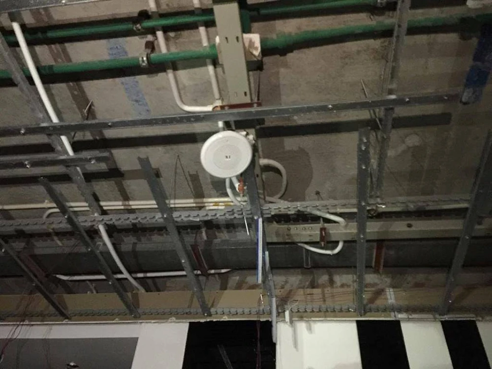 Mảng trần thạch cao đổ sập xuống nền nhà.