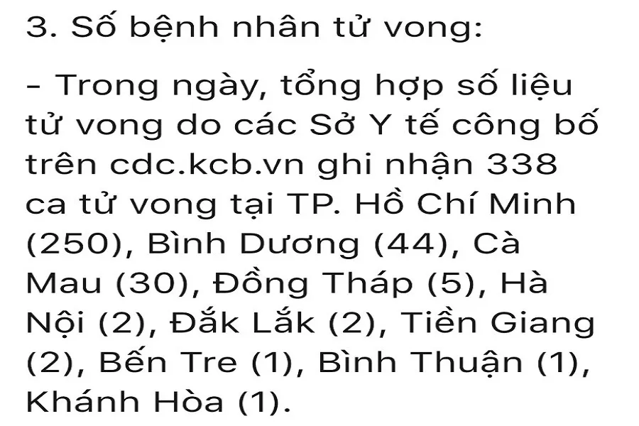 Chiều tối 3-9, Văn phòng UBND tỉnh Cà Mau thông tin trong ngày hôm nay tỉnh này có 1 ca COVID-19 tử vong chứ không phải là 30 ca tử vong như một số báo đã thông tin.