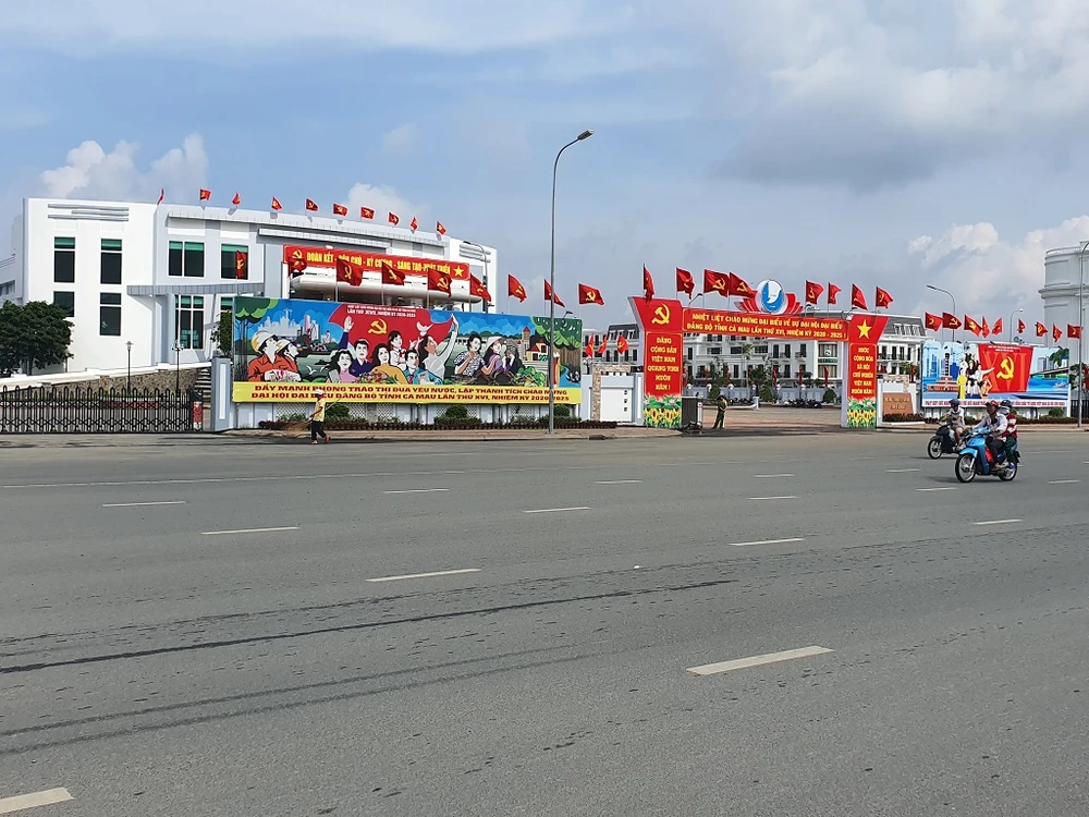 Khu vực diễn ra Đại hội trang trí khiêm tốn, không có con đường nạo bị chặn suốt quá trình diễn ra Đại hội Đảng bộ tỉnh Cà Mau (ảnh: Trần Vũ).