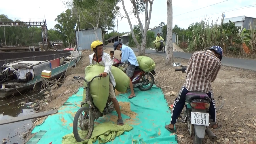 Anh Nguyễn Văn Nam, thương lái đến từ Cần Thơ, cho biết: "Chúng tôi phải thuê xe ôm chở lúa từ nhà nông dân đến ghe từ gần tháng qua. Cứ mỗi chuyến xe ôm chở được hai bao lúa, 100 kg, tôi phải tốn 27.000 đồng. Số tiền này nông dân phải chịu nhưng không bán được giá hơn, thậm chí còn rất mất thời gian, tốn thêm nhiều chi phí khác".