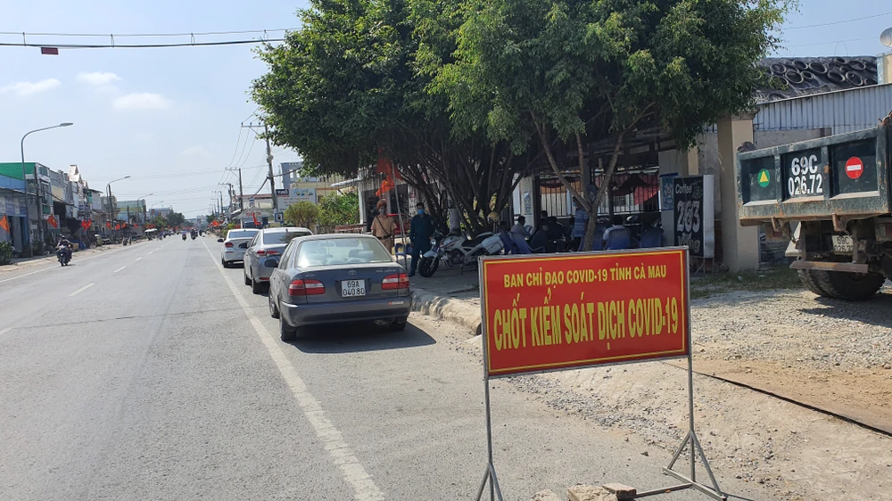 Cà Mau thiết lập các chốt ở cửa ngõ ra vào tỉnh để kiểm soát người đi về tỉnh. Trong ảnh: Hoạt động ở chốt kiểm soát Phụng Hiệp. Ảnh: TRẦN VŨ
