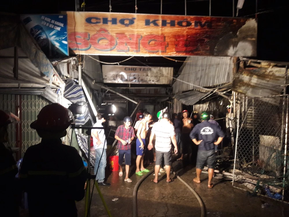 Hiện trường vụ cháy chợ tạm ở Sông Đốc hôm 26-10-2019 (Ảnh Trần Quốc).