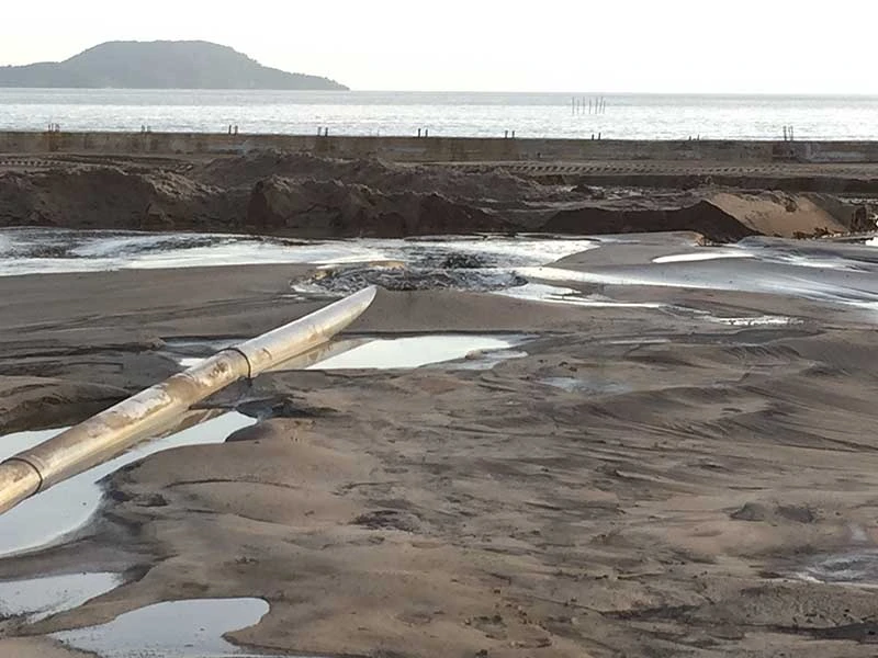 Hiện trường vụ bơm cát khi chưa lập thủ tục đăng ký. Ảnh: TV