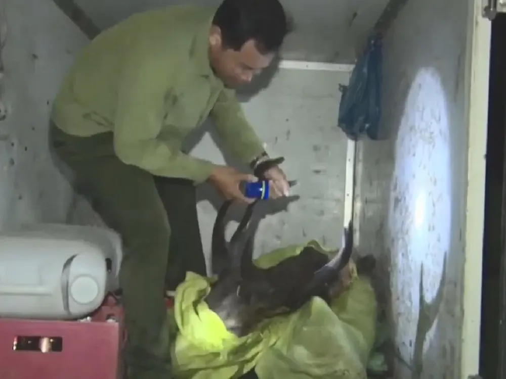 Đến khoảng 20 giờ cùng ngày, cán bộ Vườn quốc gia đã bắt quả tang một xe tải của ông Trần Hải Dương vận chuyện các bộ phận của con nai rừng. Chỉ riêng phần thịt, không có nội tạng đã cân nặng 103kg. Theo các cán bộ Vườn quốc gia đánh giá, con nai này khi còn sống chắc chắn nặng không dưới 150kg.