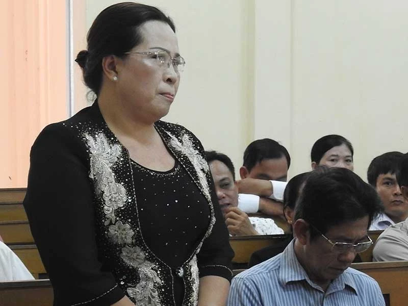 Bà Bùi Lệ Oanh ra tòa làm chứng ở phiên xử phúc thẩm ngày 24-10-2015. Ảnh: T.VŨ