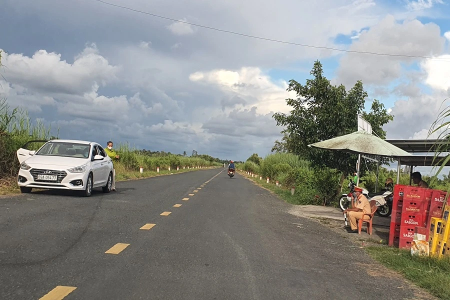 Một chốt kiểm soát dịch bệnh trên đường về Sông Đốc hôm 22-8-2021. Ảnh: TRẦN VŨ