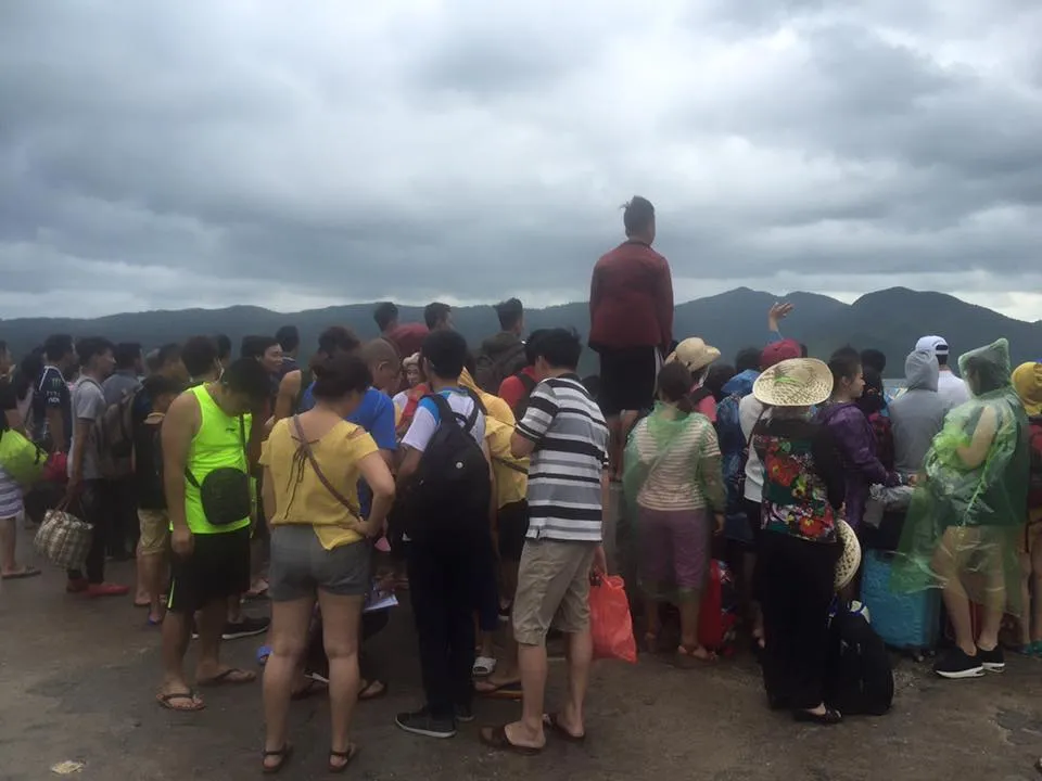Hàng trăm khách đợi tàu về đất liền hốt hoảng khi tàu ở đảo Minh Châu - Quan Lạn không xuất bến do gió to.