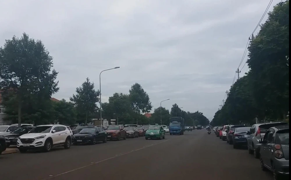 Ô tô đỗ tràn ra các tuyến đường quanh Trường Hoàng Việt. Ảnh cắt từ clip