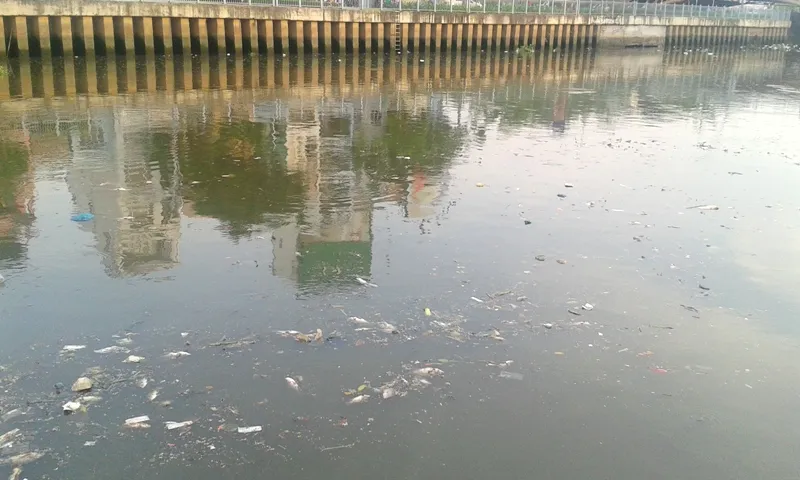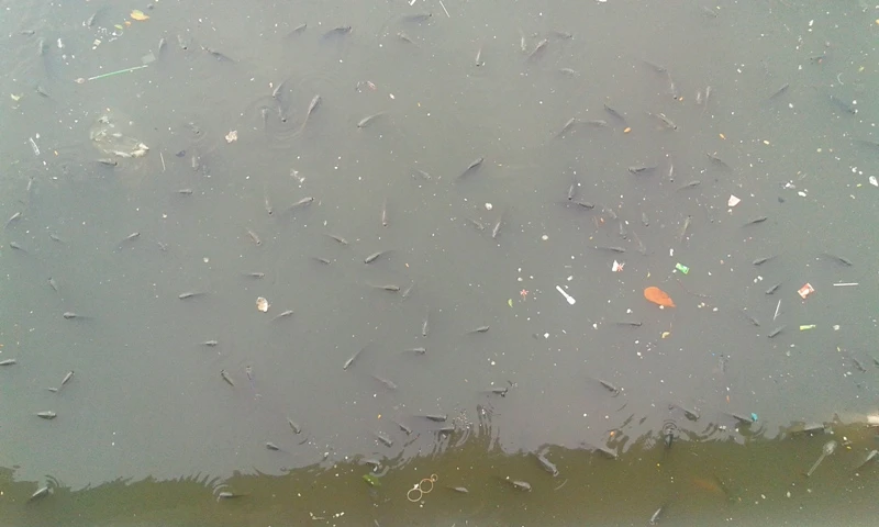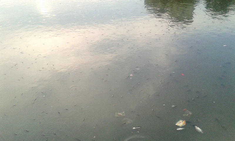 Hàng chục ngàn con cá thi nhau ngóc đầu lên mặt nước, thoi thóp thở. Hầu hết là cá rô phi, cỡ bằng ba bốn ngón tay người lớn.